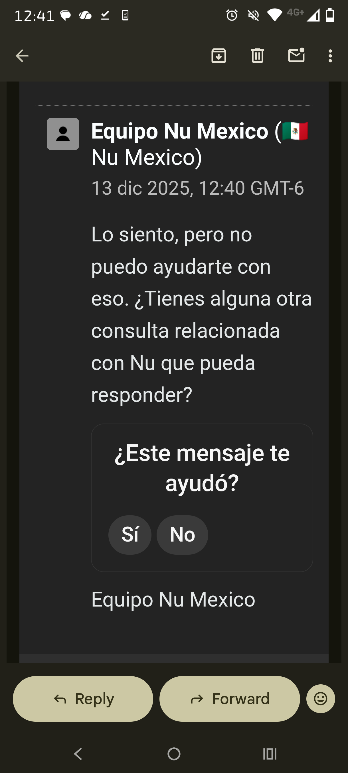 En caso de más dudas, puedes escribir por el correo que ya nos enviaste o a ayuda@nu.com.mx desde el correo que está registrado y con gusto nuestro equipo te atenderá.