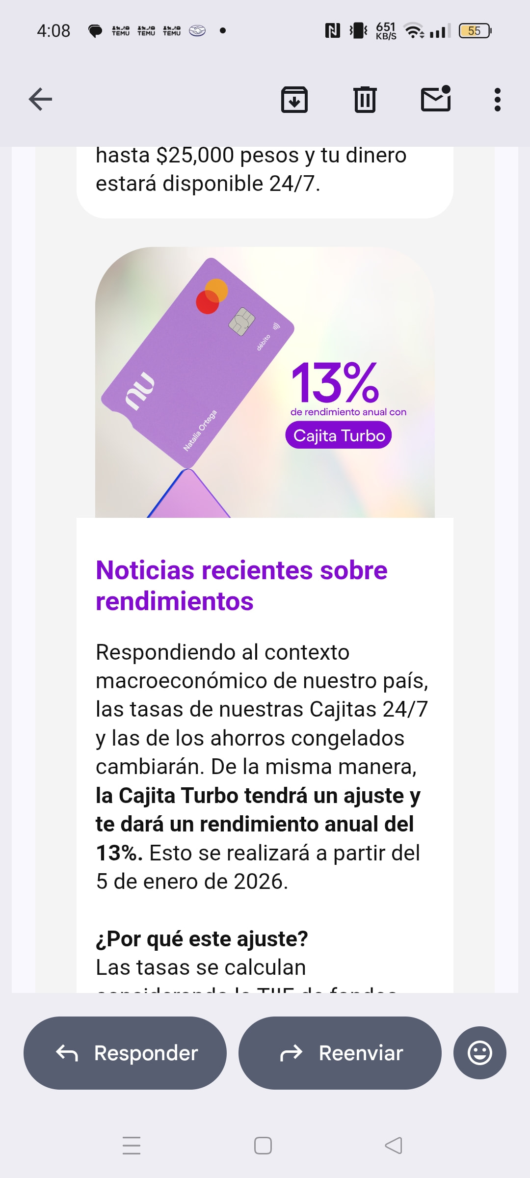 Hola fui a mi correo electrónico y me dice que el próximo 05 de enero va a bajar de 15% a 13%